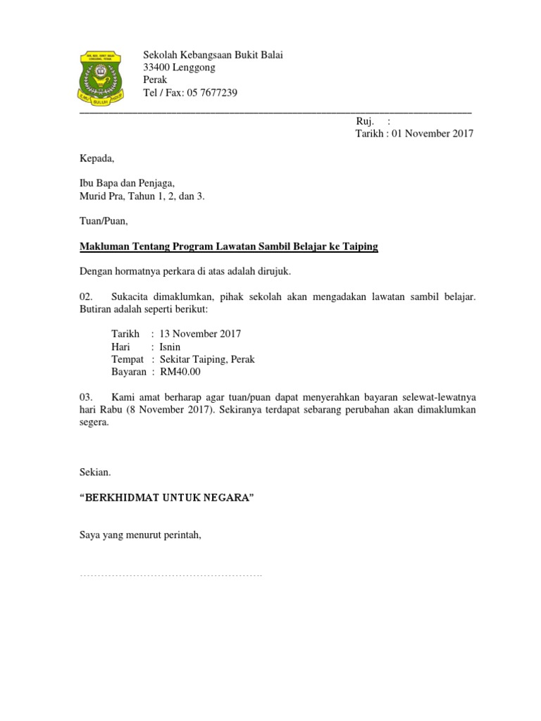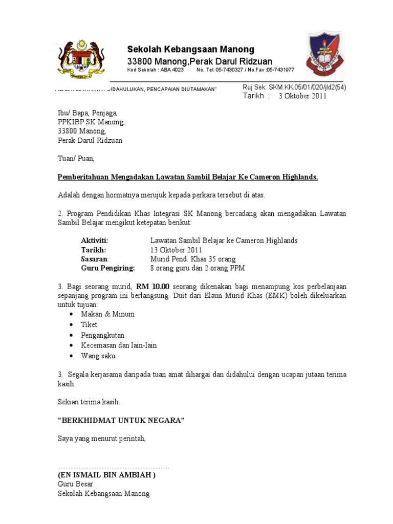 Bukan ibu bapa saja malah insan di. Tuan Puan Pemberitahuan Tentang Perkhemahan Tahunan Pasukan Pakaian Seragam Peringkat Sekolah. Surat makluman program kpd ibu bapa.