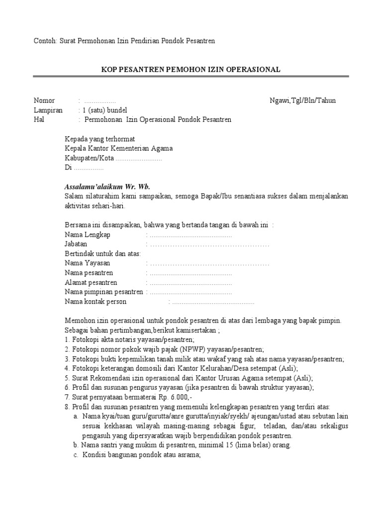 Proposal Izin Operasional Rumah Tahfidz Qur An Pdf