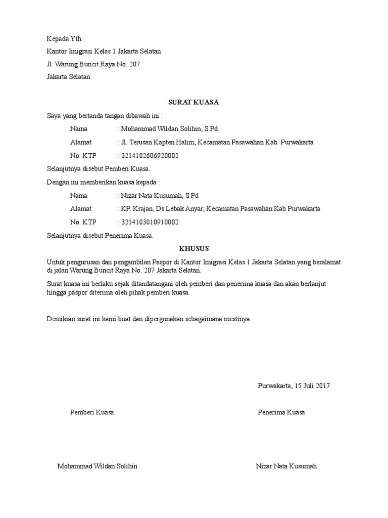 Dengan adanya surat kuasa ini pihak imigrasi akan percaya bahwa orang yang mengambil paspor kita memang benar-benar suruhan kita. Untuk Pengurusan Pembuatan Paspor di Kantor Imigrasi Jember Jawa Timur. Berikut adalah contoh surat kuasa pengambilan paspor di kantor imigrasi yang bisa Anda tiru ketika infin diwakilkan kepada orang lain mengambilkan paspor Anda ketika Anda berhalangan hadir untuk.